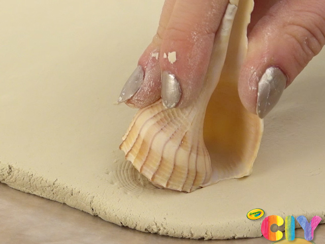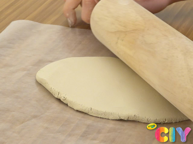On wax paper, flatten a large clay ball with a rolling pin to create the surface for your imprints. Make it thick enough to make your impressions!
