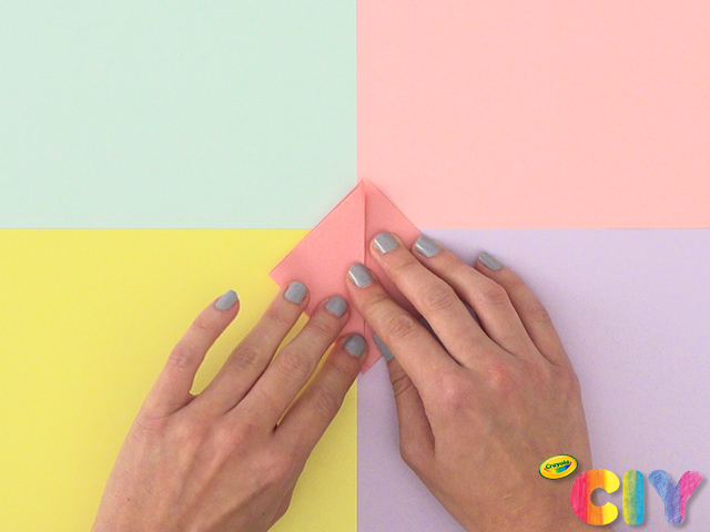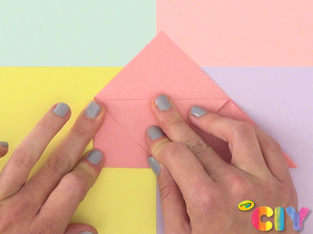 Fold down top sheet (tip of the triangle touches base) and crease.
