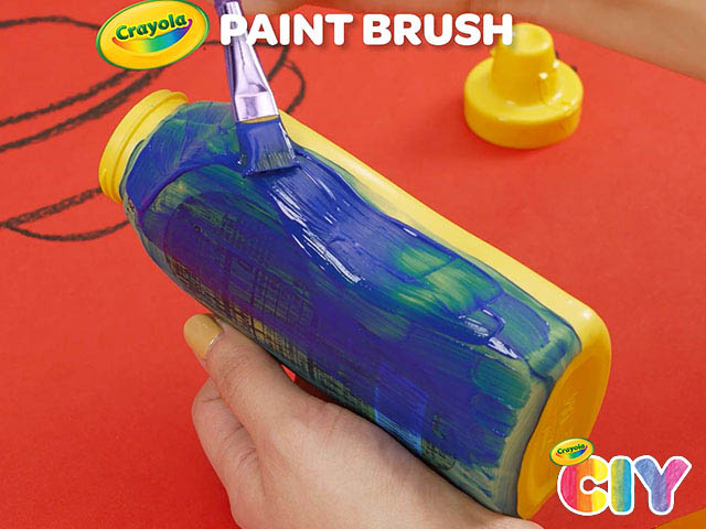 Paint French's Mustard container with Crayola Acrylic Paint, leaving the front face unpainted.