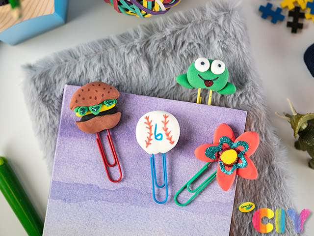 Bookworms can pick up where they left off! Create colorful DIY bookmarks out of paper clips & Model Magic.