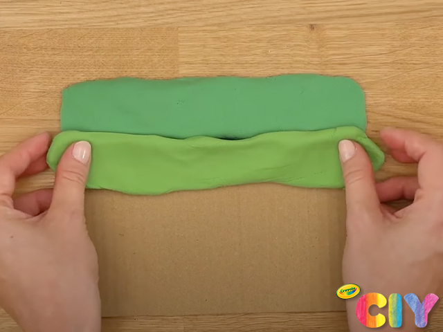 Cover the cardboard with Crayola Model Magic (green, yellow & tan)