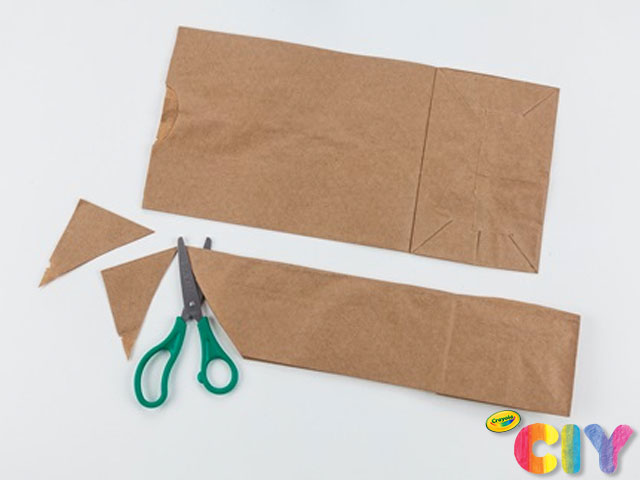 Fold a brown paper lunch bag in half and cut the open end into a point.