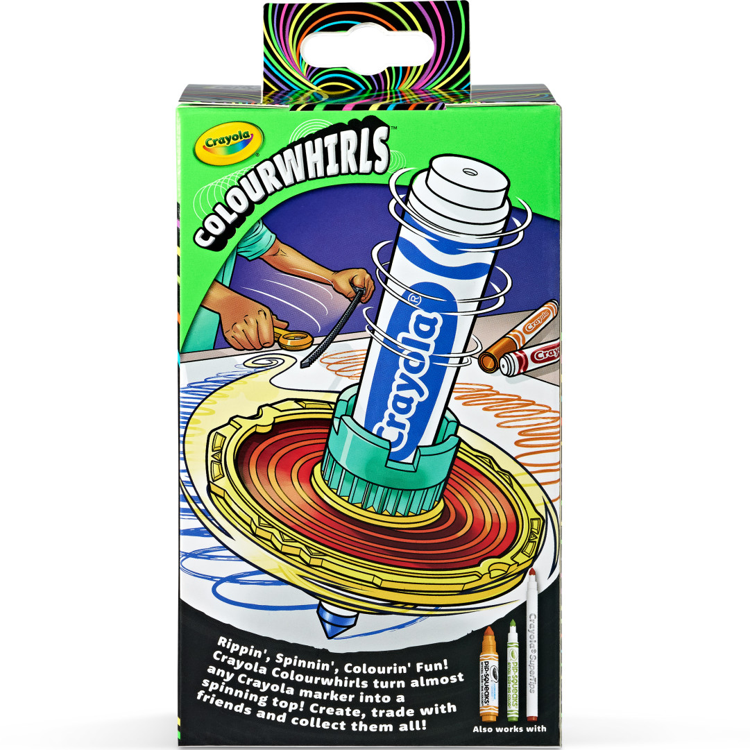 • Experience the Ultimate Colour Battle with Colourwhirls Neon! Using Colourwhirls, turn your Crayola Marker into a spinning top! Kids can compete against each other with colourful, creative results! Mark an area on a page for the winning Colourwhirls unit to remain in, see which Colourwhirls unit can spin for the longest or have a competition for the best spiral pattern. Customisable and interchangeable, Kids can personalise their Colourwhirls colour disc and swap them with friends.