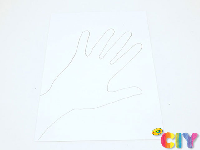 Metti la mano su un foglio bianco di carta bianca e usa le matite colorate cancellabili Crayola per tracciarne il contorno.