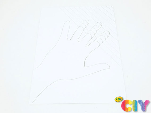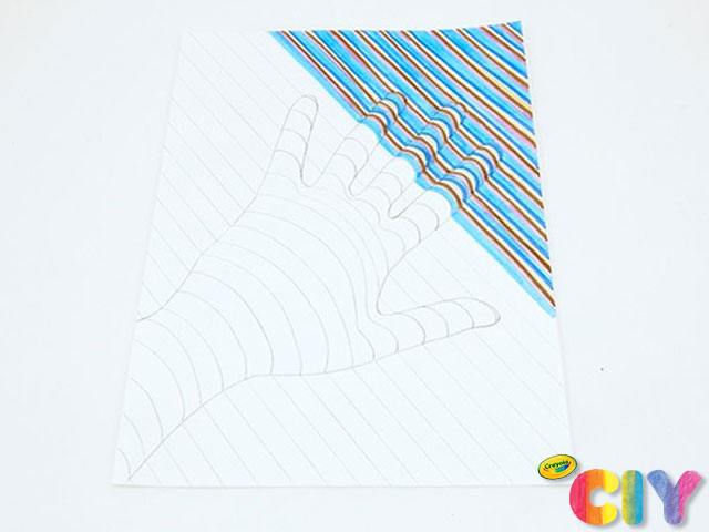 Alza la mano fuori dalla pagina con questa giocosa illusione ottica! Usa i pennarelli Crayola per progettare un audace disegno 3D.